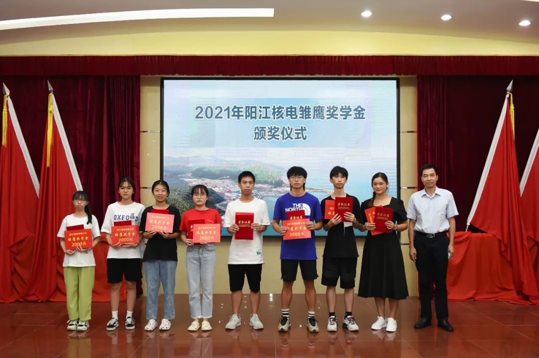 8月26日上午,在臨近開學之際,陽江核電有限公司(簡稱“陽江核電”)在廣東省陽江市陽東區東平鎮舉行2021年陽江核電雛鷹獎學金頒獎儀式,表彰和獎勵東平鎮允泊村37名考上高等院校和重點高中的優秀學子。自2014年設立獎學金以來,累計有195人獲得“陽江核電雛鷹獎學金”。
