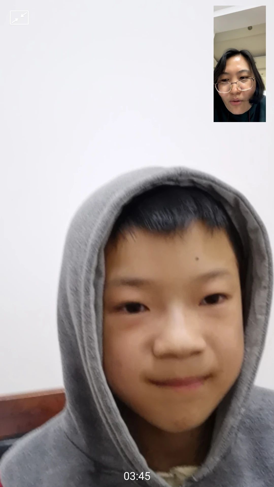 ▲楊毅、韓雙、王迎芬與孩子們進行視頻交流