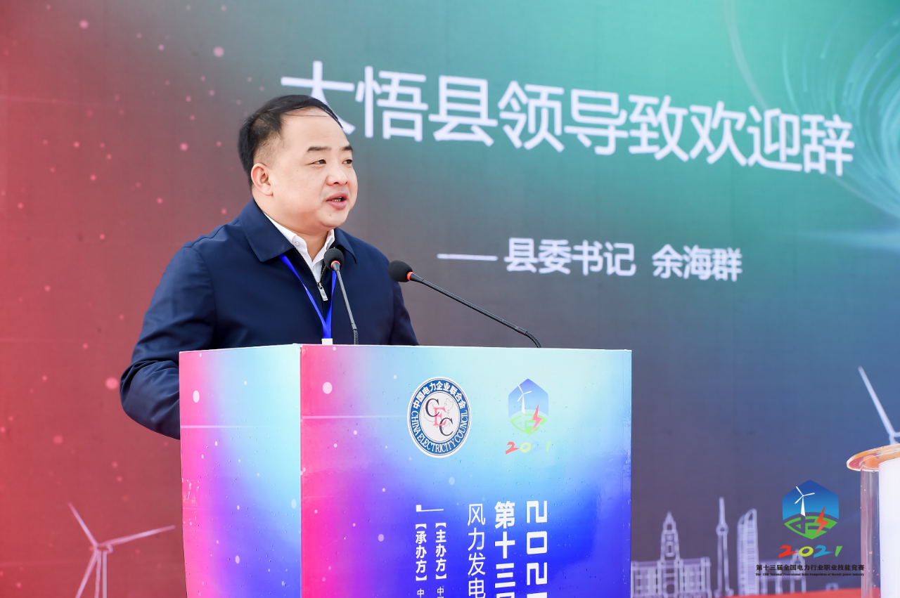 湖北省孝感市大悟縣委書記余海群在致辭中介紹,大悟是著名革命老區(qū),是全國十大將軍縣之一,共有16萬人參加革命,7萬英雄兒女為新中國的建立獻(xiàn)出了寶貴生命。大悟以革命紅旗不倒、組織活動不斷、武裝斗爭不停而享譽全國。近年來,大悟縣緊扣“紅色高地、綠色崛起”發(fā)展定位,搶抓列入全國首批綠色能源示范縣重要機(jī)遇,大力開發(fā)以風(fēng)能、太陽能為主的綠色能源,新能源總裝機(jī)規(guī)模位居華中縣級區(qū)域第一。全縣在后續(xù)工作中,將搶抓“碳達(dá)峰 碳中和”新機(jī)遇,大力弘揚勞模精神、勞動精神、工匠精神,認(rèn)真學(xué)習(xí)借鑒此次技能競賽展示的新理念、新模式、新技術(shù),充分發(fā)揮資源優(yōu)勢和產(chǎn)業(yè)優(yōu)勢,全力推進(jìn)清潔能源產(chǎn)業(yè)做大做強(qiáng)、提質(zhì)增效,加快建設(shè)華中新能源之都,奮力推動新時代大悟高質(zhì)量發(fā)展。