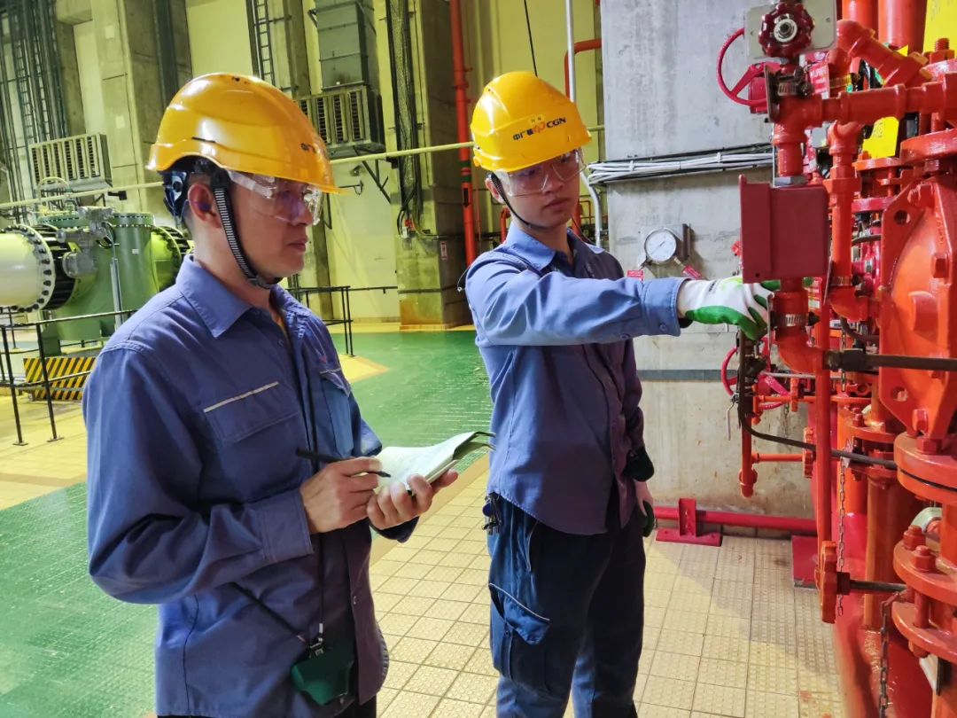 陽江核電有限公司吹響能源保供攻堅戰“集結號”,多措并舉,多發滿發。圖為陽江核電有限公司設備工程師楊雁宇為了保障核電機組穩定運行,對重要廠用水系統、設備情況進行狀態檢查。