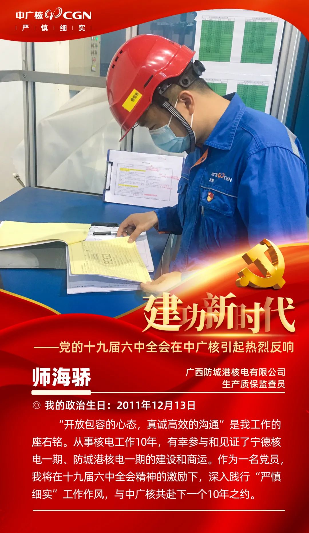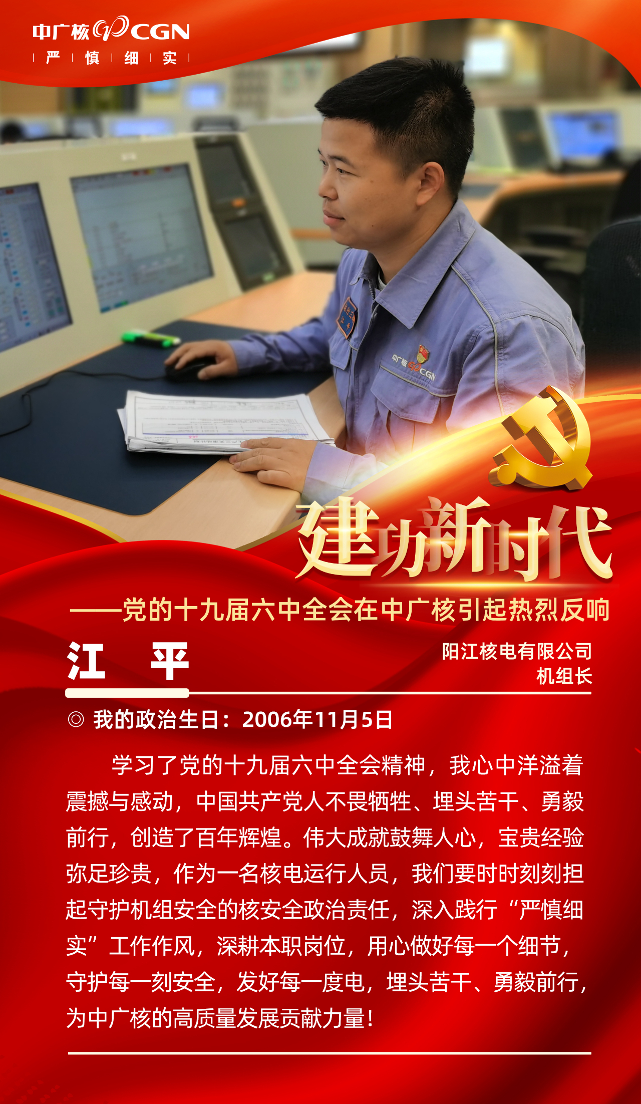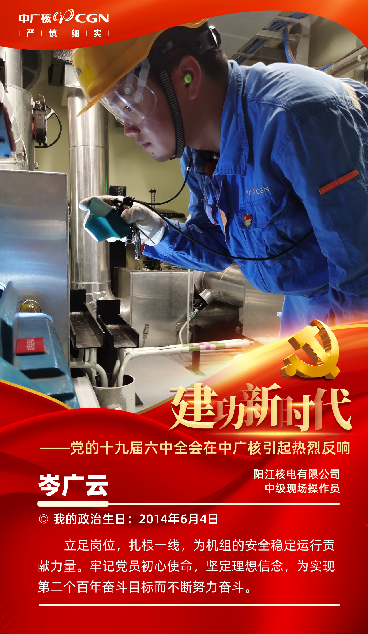 十九屆六中全會全面總結了黨的百年奮斗輝煌偉大成就歷史意義和歷史經驗,具有重大現實意義和深遠歷史意義。11月15日下午中國廣核集團有限公司黨委召開專題會議集體學習全會精神,全面動員部署中國廣核集團(簡稱“中廣核”)學習宣傳貫徹有關工作。十九屆六中全會在中廣核基層黨員干部中引起熱烈反響,大家表示將更加緊密地團結在以習近平同志為核心的黨中央周圍,大力弘揚建黨精神,匯聚起堅定歷史自信,創造歷史偉業的磅礴力量,為推動中廣核高質量發展,實現中華民族偉大復興而不懈奮斗。
