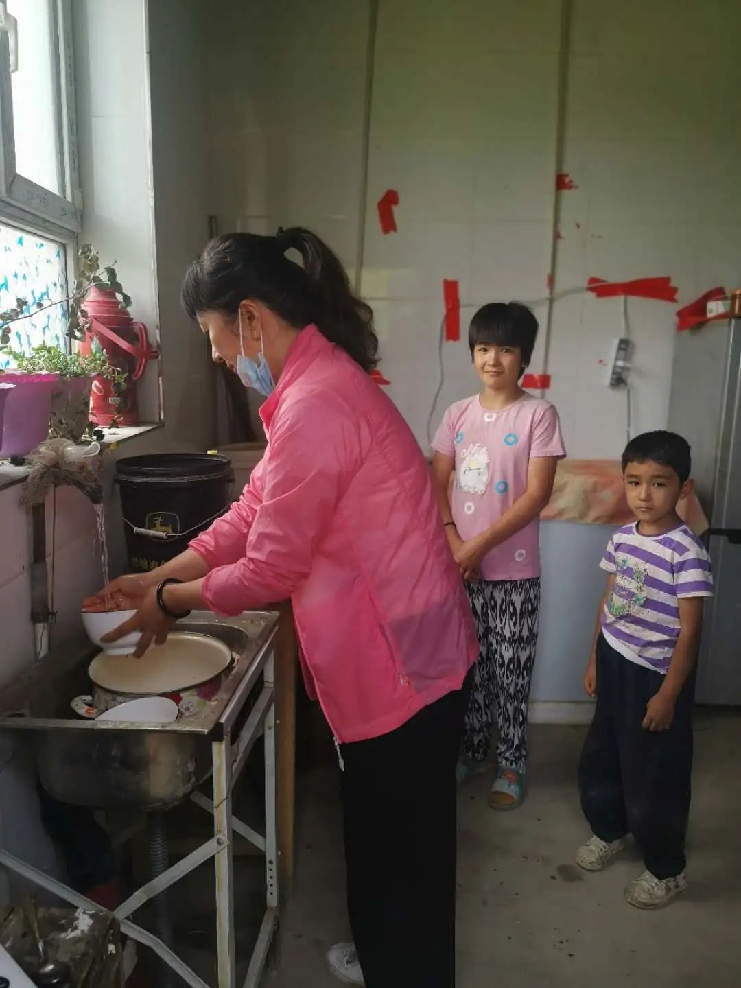上次離開時,我內心盤算著這周去幫忙把她們家里收拾一下,于是今天帶著洗潔精、洗衣液來到了她們家。我先幫忙洗碗,再收拾廚房,希望夏天有個干凈的廚房做飯吃,接著,我教姐姐幫兩個小妹妹洗頭。