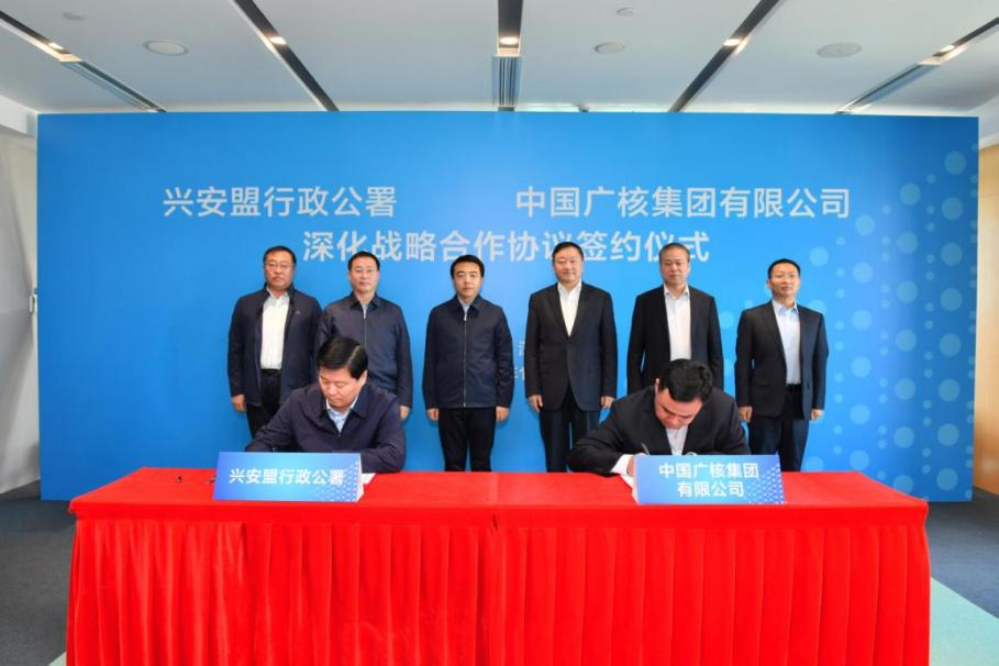 12月6日,在中國廣核集團有限公司黨委書記、董事長楊長利和內蒙古自治區興安盟盟委書記張曉兵的共同見證下,中國廣核集團有限公司黨委常委、副總經理李亦倫和興安盟盟委委員、常務副盟長姜天虎分別代表雙方簽署了《深化戰略合作協議》,共同打造清潔能源示范基地。根據協議,“十四五”期間中國廣核集團(簡稱“中廣核”)將重點開發建設興安盟500萬千瓦風光基地、索倫120萬千瓦抽蓄項目、生物質天然氣項目、阿爾山零碳小鎮及綜合能源等項目。