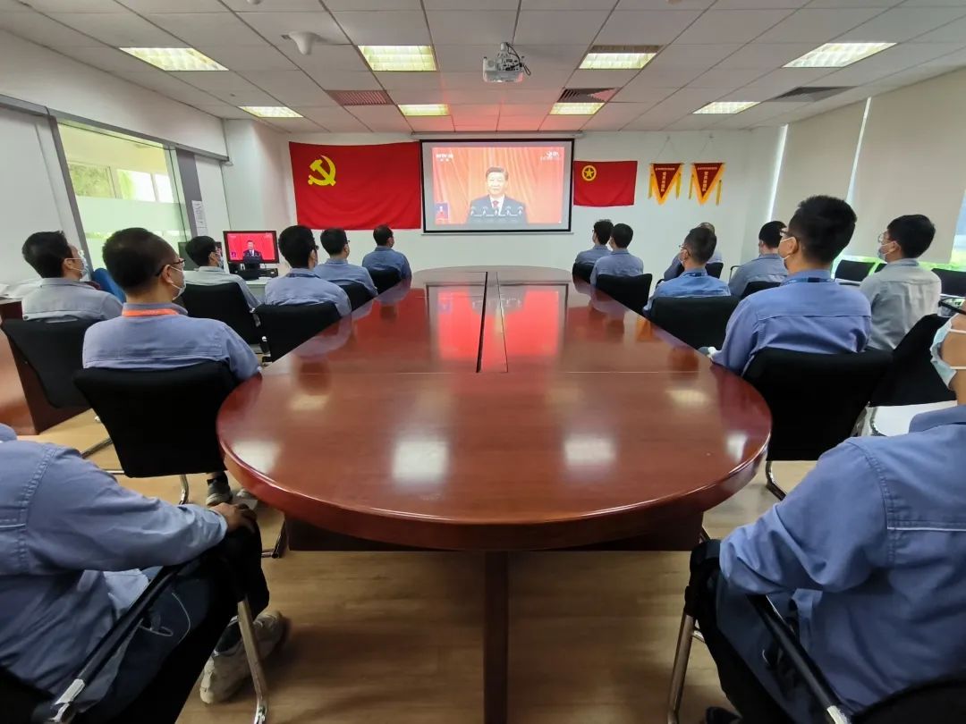 中廣核陸豐核電有限公司黨委組織公司干部員工近300人,分別在廠前區辦公樓會議室、文宣中心報告廳、項目施工現場等地集體觀看了大會,聆聽習近平總書記重要講話。