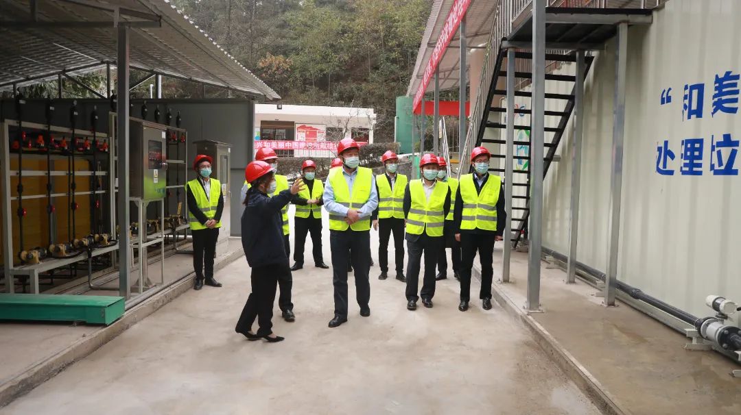 楊長利調(diào)研了項目建設進展、幫扶模式、技術創(chuàng)新、臨時聯(lián)合黨支部建設等基本情況,詳細查看了項目現(xiàn)場管理、設備運行、工藝流程和水處理效果。在排水口,當看到原本深黑惡臭的垃圾滲濾液經(jīng)過電子束工藝處理,變成透明無味的清水時,他充分肯定了項目幫扶效果:“鄉(xiāng)村振興就是要做成這樣。”楊長利指出,樂業(yè)垃圾滲濾液處理項目不僅解決了縣里的困難,推動了地方生態(tài)文明建設,也促進了中廣核產(chǎn)業(yè)發(fā)展,實現(xiàn)了雙贏。他強調(diào),一要充分發(fā)揮核技術產(chǎn)業(yè)和技術優(yōu)勢,確保項目安全高效運營,在不增加當?shù)亟?jīng)濟負擔前提下,解決垃圾滲濾液全量化達標排放的環(huán)保難題;二要加強專業(yè)人才隊伍建設,為業(yè)務發(fā)展提供有力支撐,為產(chǎn)業(yè)做強做優(yōu)做大積蓄力量;三要發(fā)揮項目示范效應,以“行業(yè)突破+地區(qū)突破”為路徑,以“設備制造+運營管理”為方法,持續(xù)優(yōu)化、復制、推廣,建設更多好項目,打造核心競爭力,提升品牌影響力。