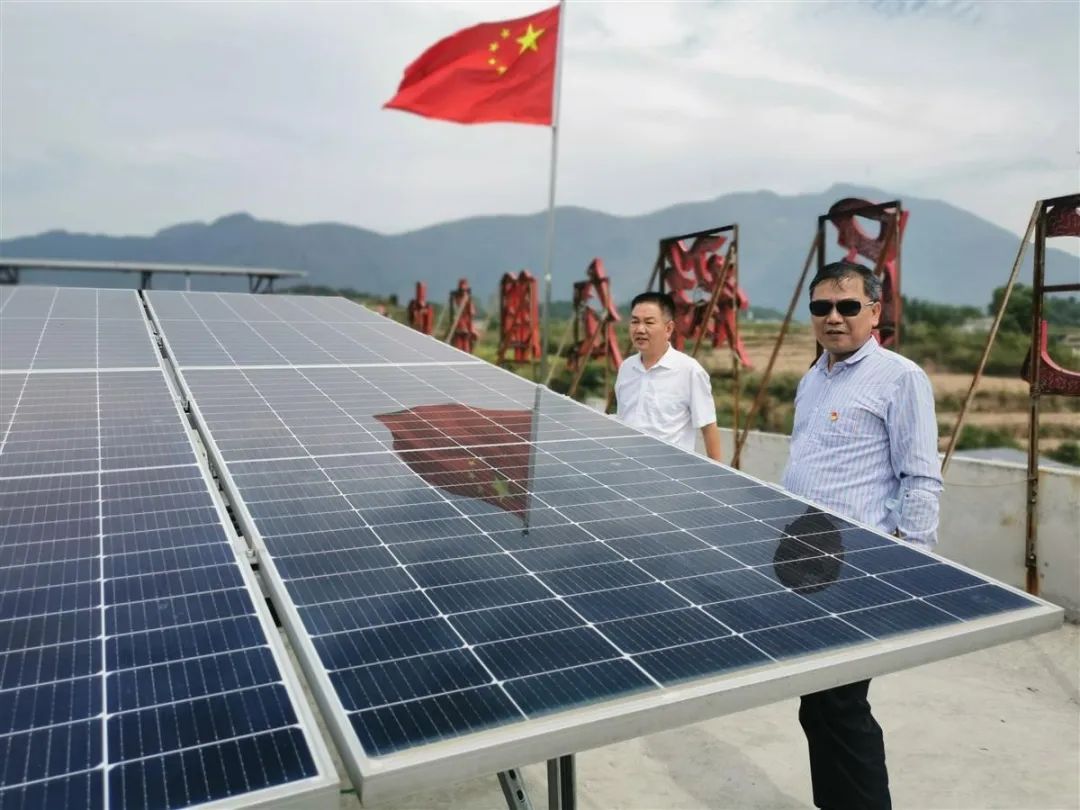 在各地搶抓“新基建”的浪潮中,吳東城村也走在了科技賦能農村能源轉型的前列。中廣核利用其自身項目優(yōu)勢,在吳東城村建設了裝機160千瓦的光伏基地,與500畝苧麻基地、300畝中藥材基地、150畝吊瓜種植基地等,在山地丘陵中錯落分布,成為一道靚麗的風景線。