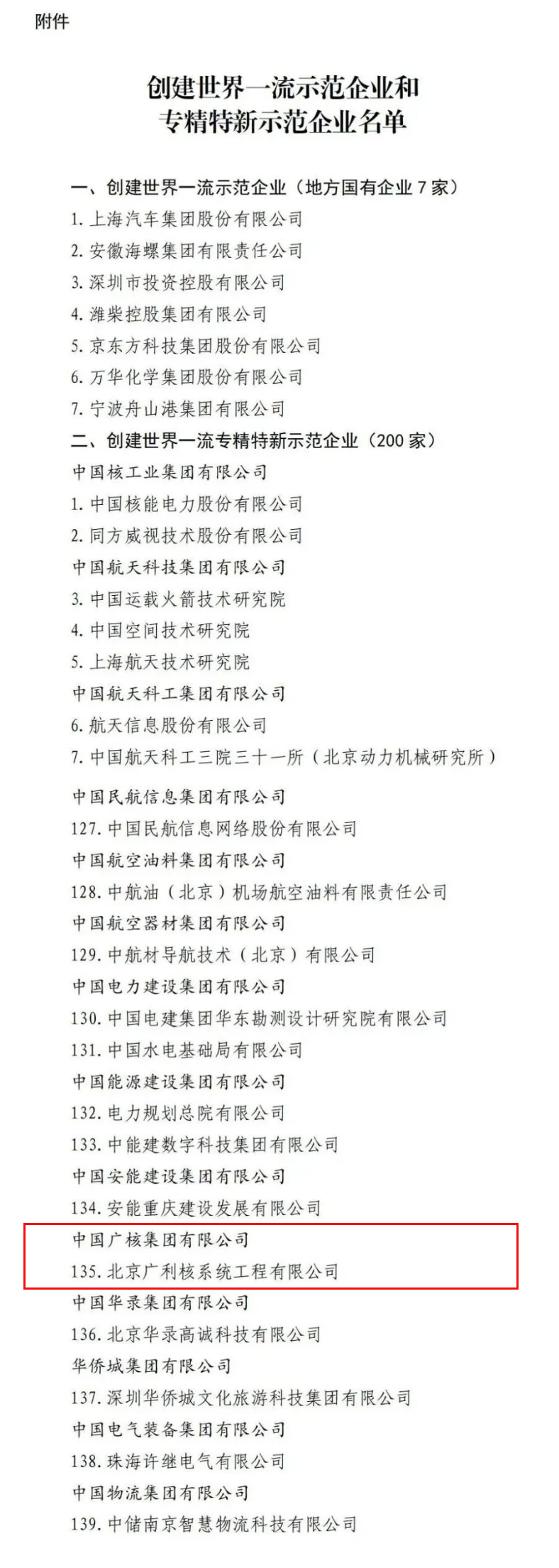 中廣核入選國務(wù)院國資委《創(chuàng)建世界一流示范企業(yè)和專精特新示范企業(yè)名單》