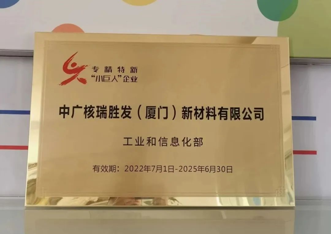 ▲2022年11月,中廣核瑞勝發(fā)收到工信部授予的專精特新“小巨人”企業(yè)牌匾