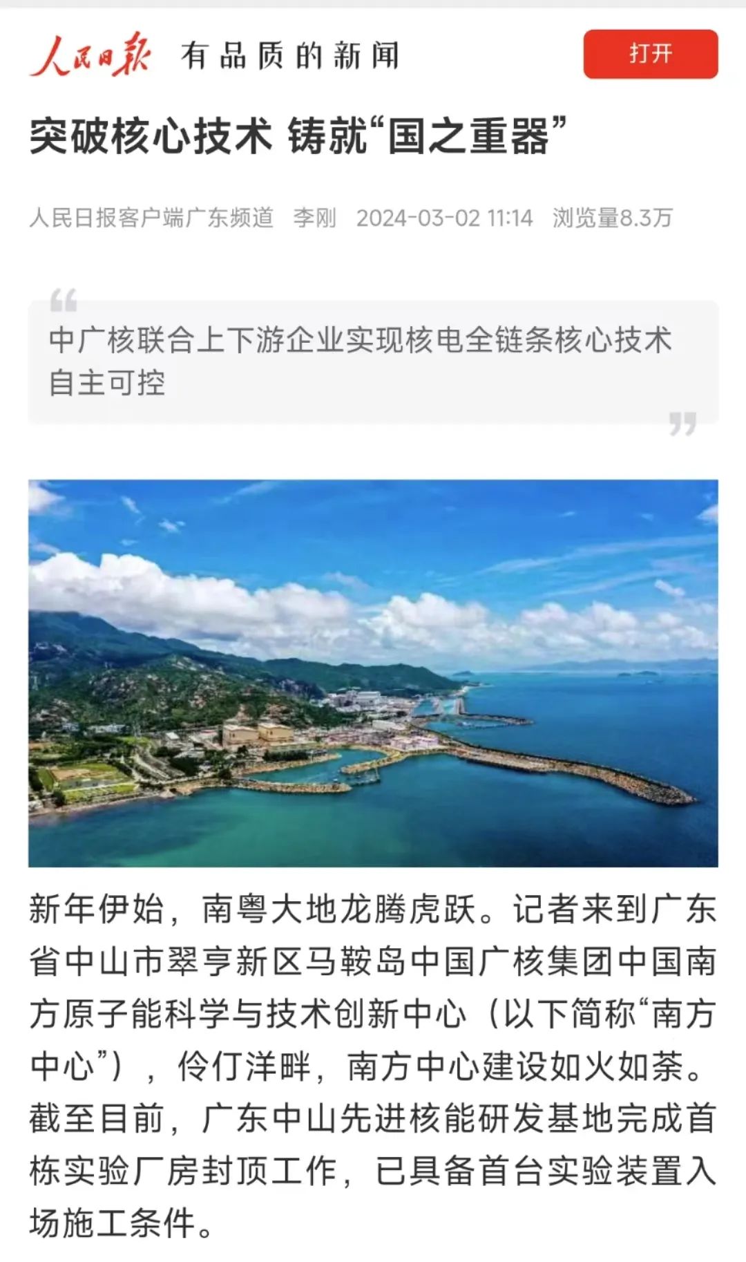 人民日報聚焦報道中廣核:突破核心技術(shù)鑄就“國之重器”