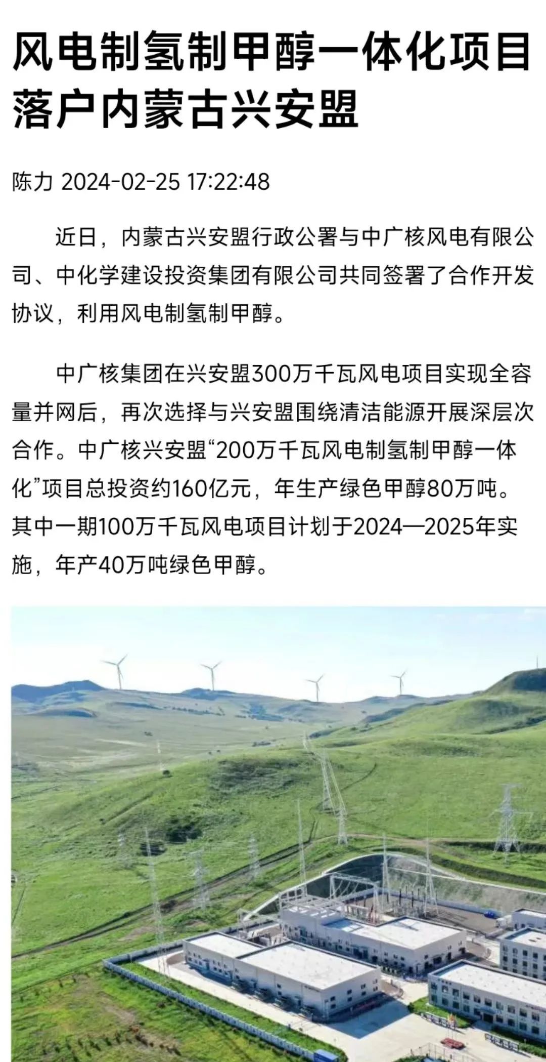 風電制氫制甲醇一體化項目