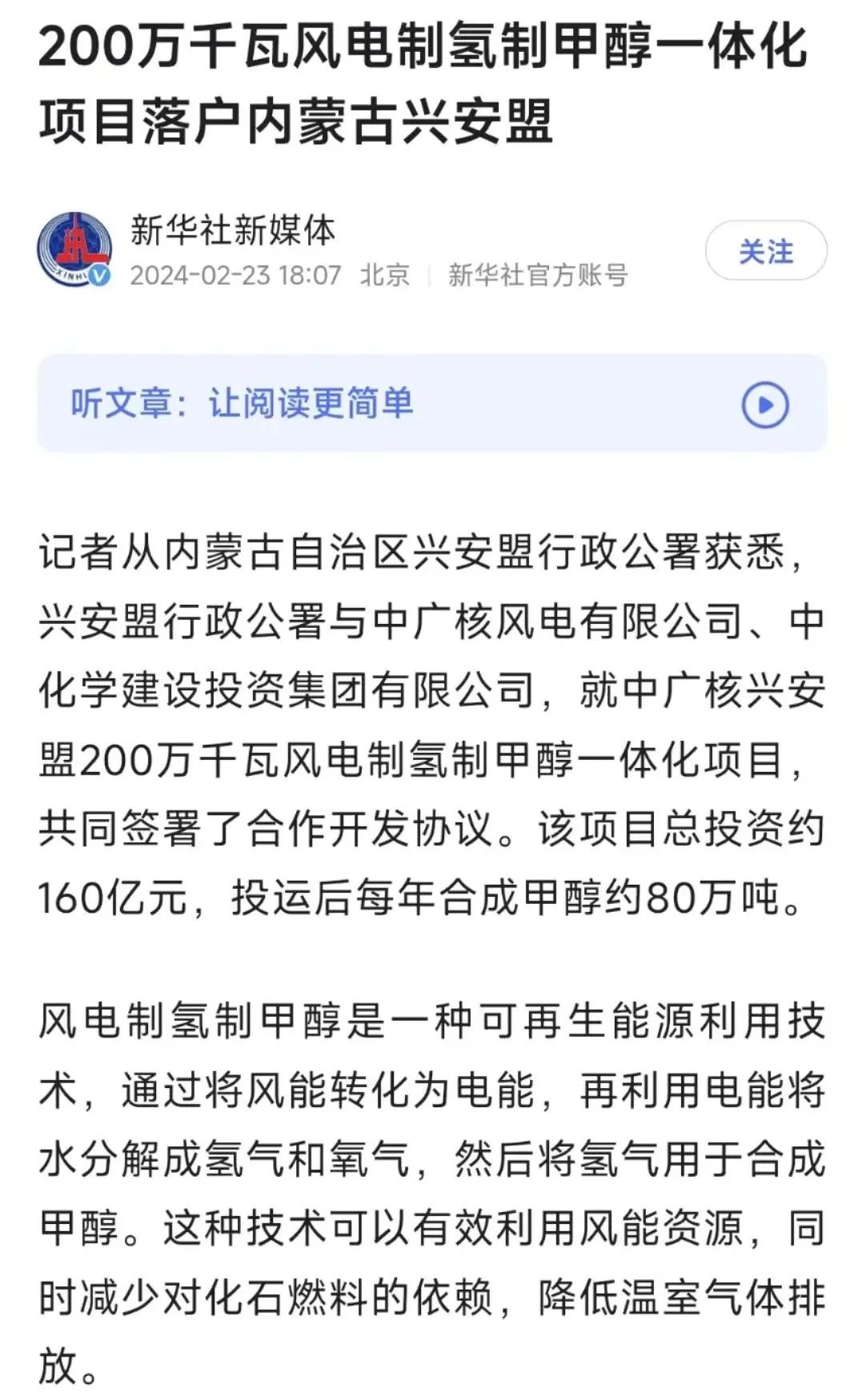風電制氫制甲醇是一種可再生能源利用技術,通過將風能轉化為電能,再利用電能將水分解成氫氣和氧氣,然后將氫氣用于合成甲醇。這種技術可以有效利用風能資源,同時減少對化石燃料的依賴,降低溫室氣體排放。該項目總投資約160億元,投運后每年合成甲醇約80萬噸。