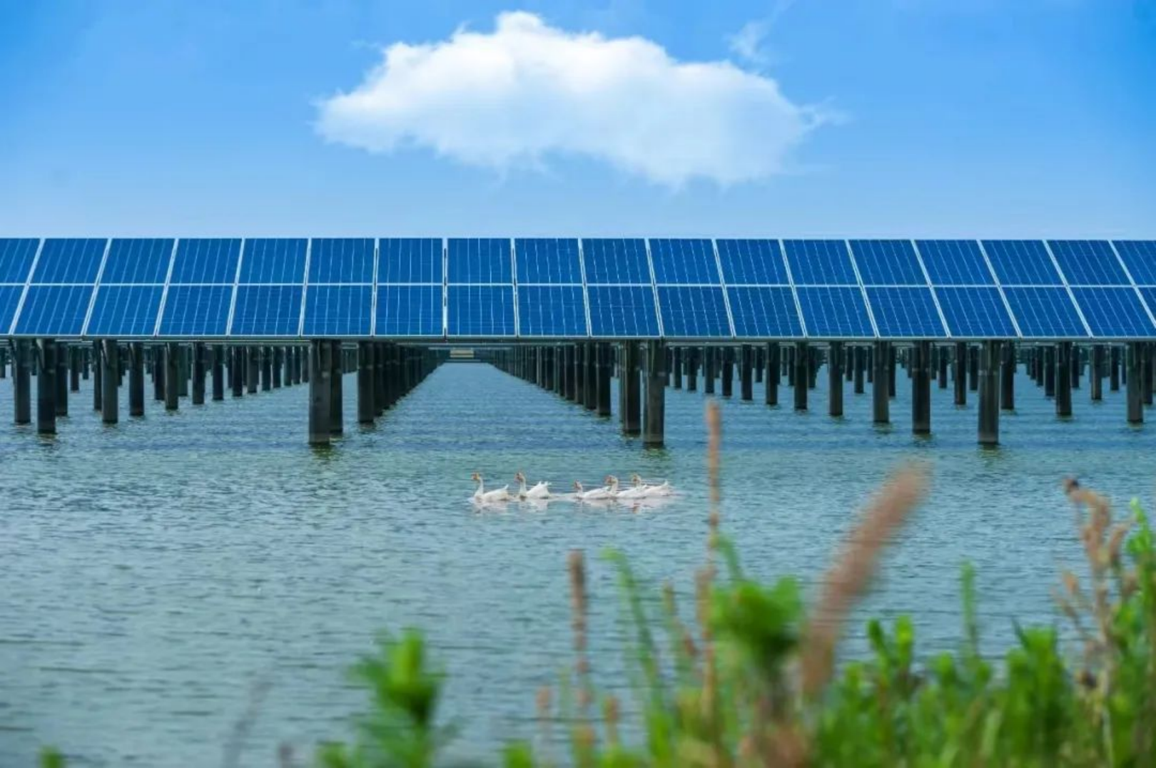 ▲中廣核安徽當涂太白260MW漁光互補光伏電站