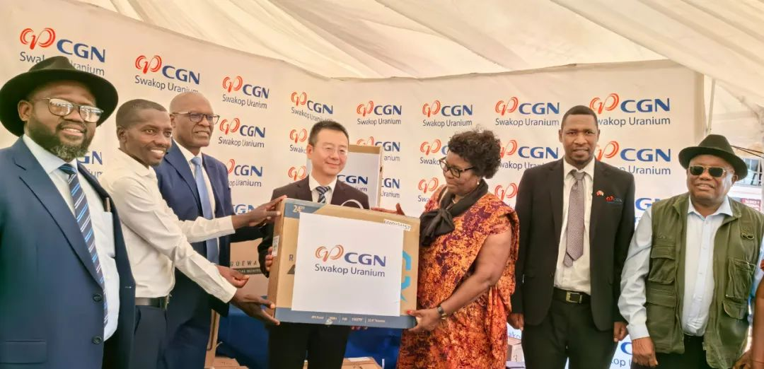 近日,中廣核鈾業(yè)下屬斯科公司為納米比亞Ohangwena(奧漢圭納)省Lazarus Haufiku學(xué)校(拉扎盧斯豪菲庫(kù)聯(lián)合學(xué)校)捐贈(zèng)的計(jì)算機(jī)房投用儀式在位于納米比亞和安哥拉邊境交界處的Lazarus Haufiku學(xué)校舉行。本次儀式上,斯科公司捐贈(zèng)了16臺(tái)電腦、1臺(tái)大型打印機(jī),并正式啟用全新建設(shè)的學(xué)校圍欄。納米比亞教育文化藝術(shù)部長(zhǎng)Ester Anna Nghipondoka(安娜·恩吉蓬多卡)、礦業(yè)能源部部長(zhǎng)Tom Alweendo(湯姆·阿爾溫多),Ohangwena省省長(zhǎng)Sebastian Ndeitunga(塞巴斯蒂安·內(nèi)通加)、省教育廳廳長(zhǎng)、Lazarus Haufiku學(xué)校以及周邊學(xué)校校長(zhǎng)和全校師生等600余人出席了捐贈(zèng)儀式。