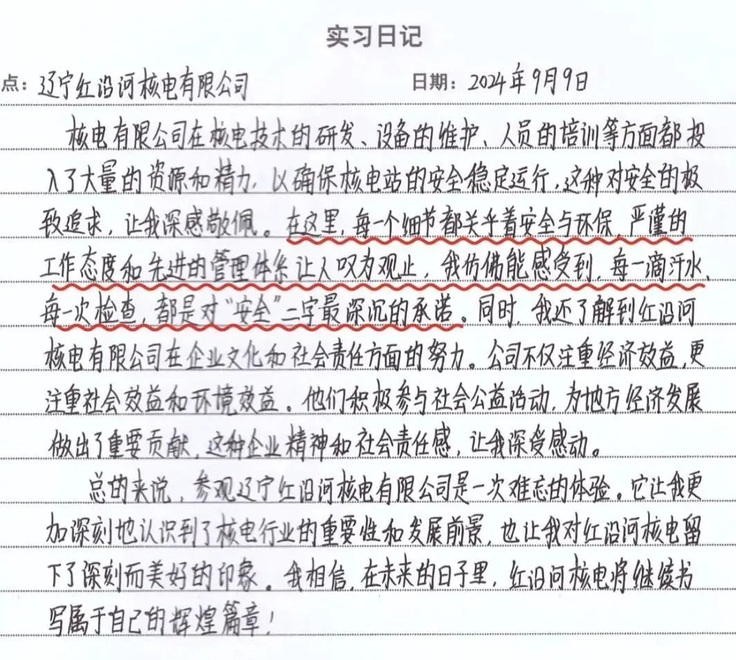 9月9日,大連理工大學船舶學院110余名學生來到紅沿河核電基地,開展為期一天的“同享清潔能源,共建美麗中國”主題研學活動。學生們在核電科普大講堂聆聽講座,了解核電發(fā)展歷史和基本原理;在模擬機教室參觀全范圍模擬機,體會核安全文化的嚴謹性;在花蹊遠眺核電機組,欣賞渤海灣日落晚霞;在文瀾閣感受讀書文化并寄出明信片;在馬拉松長廊了解全國首個核電馬拉松背后故事,感受核電人精神。隨后,學生們以日記形式記錄所見所聞,分享研學感受。