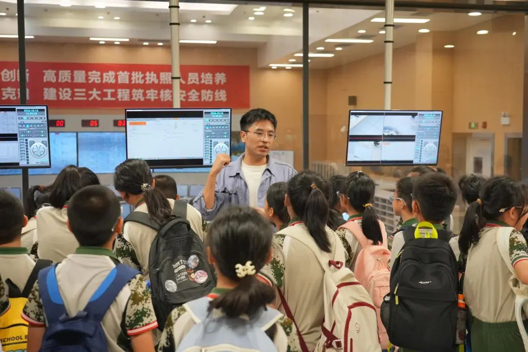 10月14日,惠州翠竹學校54名師生來到太平嶺核電基地。他們懷揣好奇與熱情,開啟全國首座生態(tài)核電建設(shè)示范項目探索之旅。師生們先后參觀綜合辦公樓6樓平臺、基地消防樓、全范圍模擬機等,核電工程師用通俗易懂的語言講述太平嶺核電發(fā)展歷程與核安全知識。同時,在核電操縱員帶領(lǐng)下,大家了解核電操縱人員成長歷程及核電“大腦”操縱運維方式。