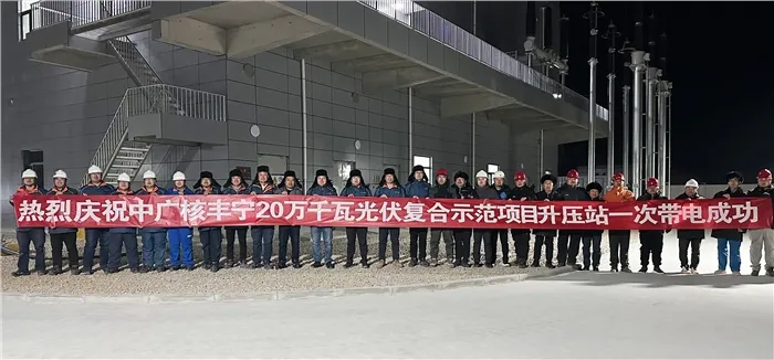 12月3日18時18分,中廣核豐寧滿族自治縣20萬千瓦光伏復合示范項目升壓站一次帶電成功。
