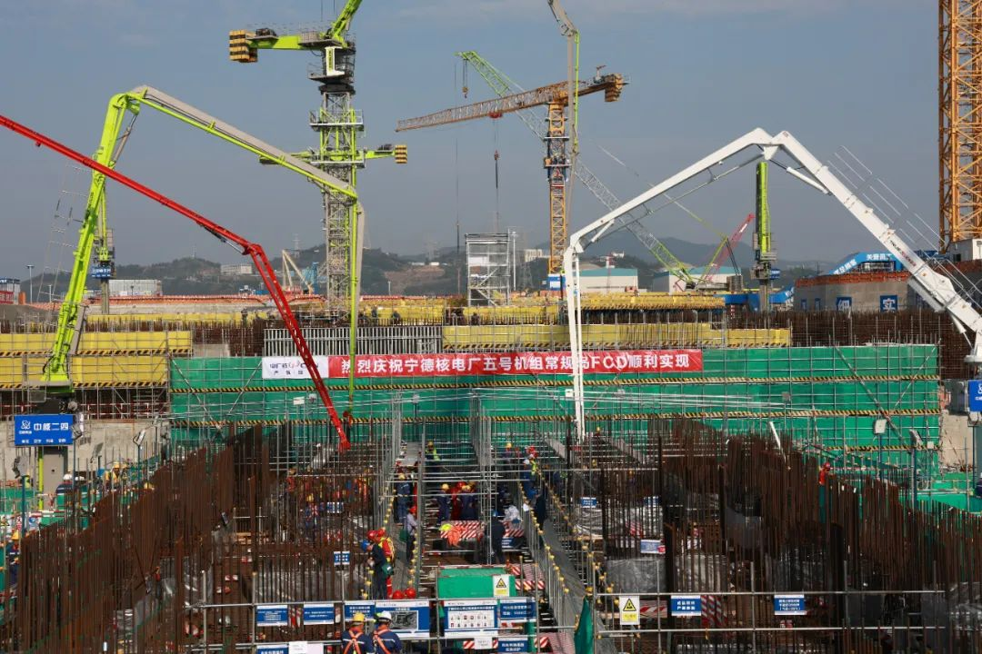 12月5日8時整,中廣核福建寧德核電項目二期工程5號機組常規島汽輪機筏基澆筑第一罐混凝土(FCD),標志著常規島土建工程進入全面施工階段。