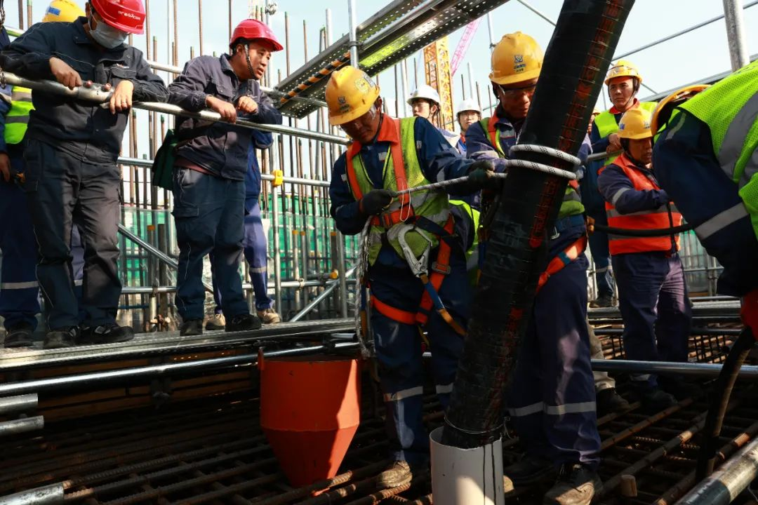中廣核寧德核電站5號機組常規島汽輪機筏基完成第一罐混凝土澆筑