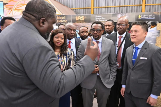 ▲納米比亞副總理兼工業化和礦業能源部部長納坦格·伊泰特、納米比亞國際關系部副部長珍尼莉·馬通杜等參觀斯科公司展臺